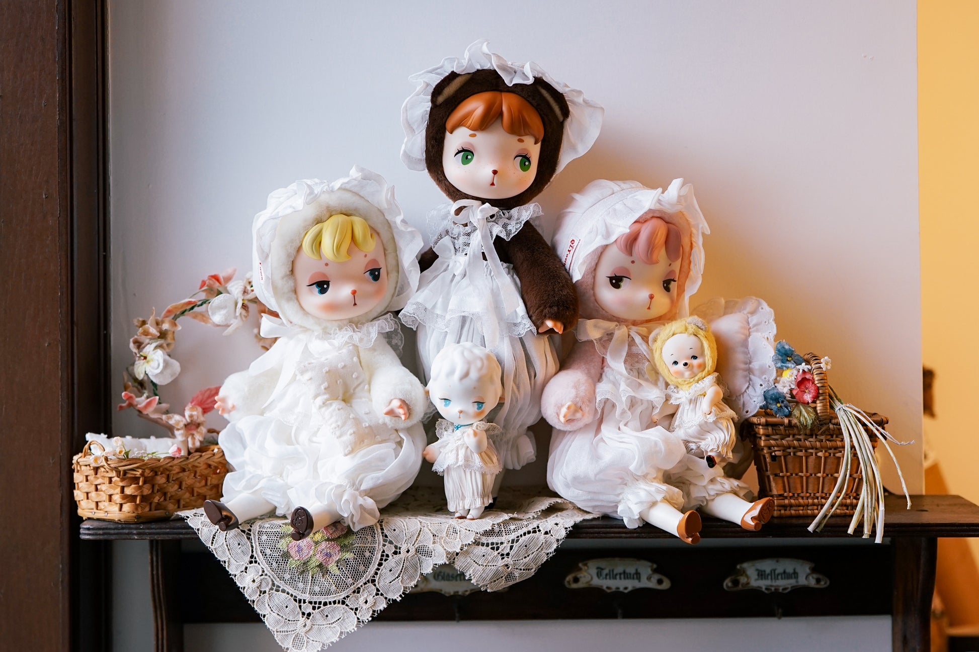 One of the Little Lamb’s most popular outfits, the White Lace Set, has been updated and upgraded to fit Bebe Mimie and Mine as well.